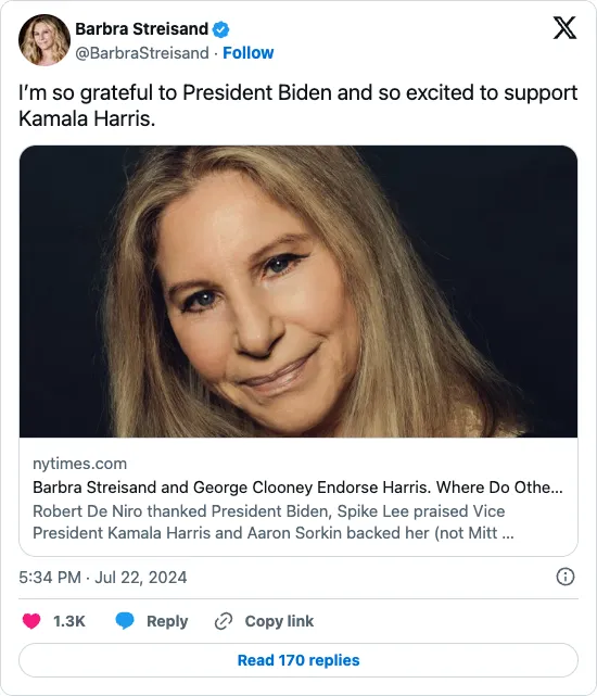 Share Barbra Streisand endorsement