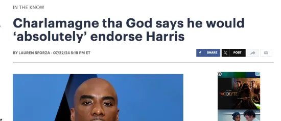 Charlamagne tha God Harris Endorsement