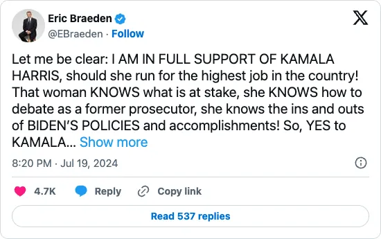 Eric Braeden Harris Endorsement
