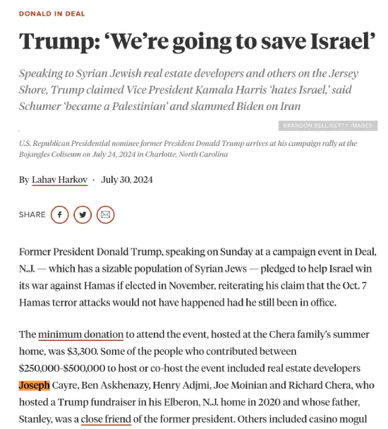 Joseph Cayre Trump Endorsement